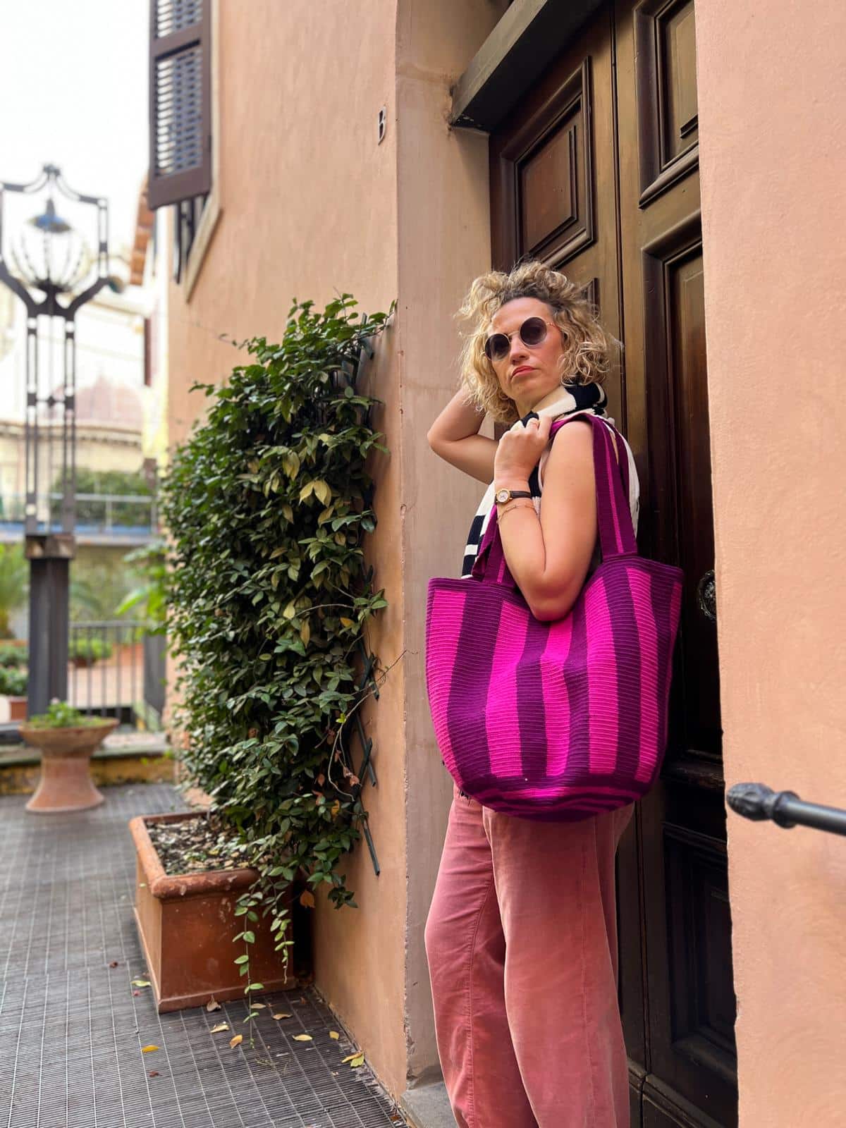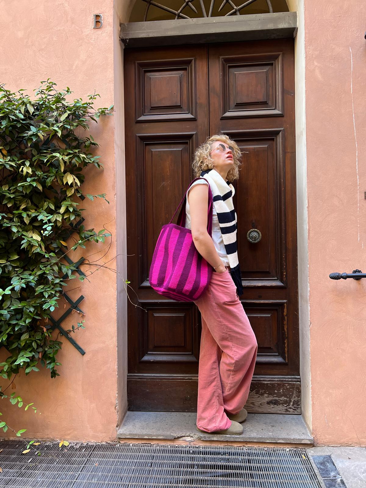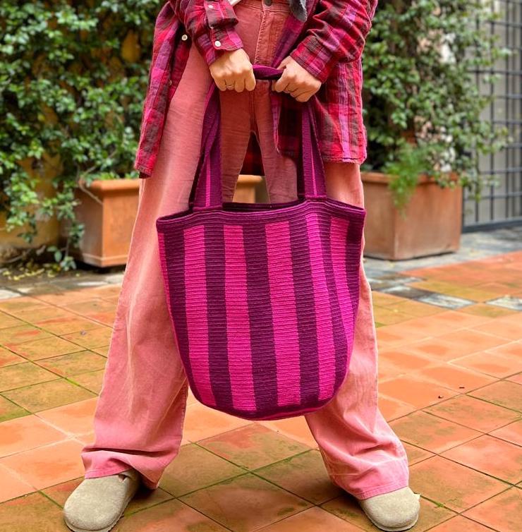 Różowa torba w rozmiarze Maxi w paski PURPLA