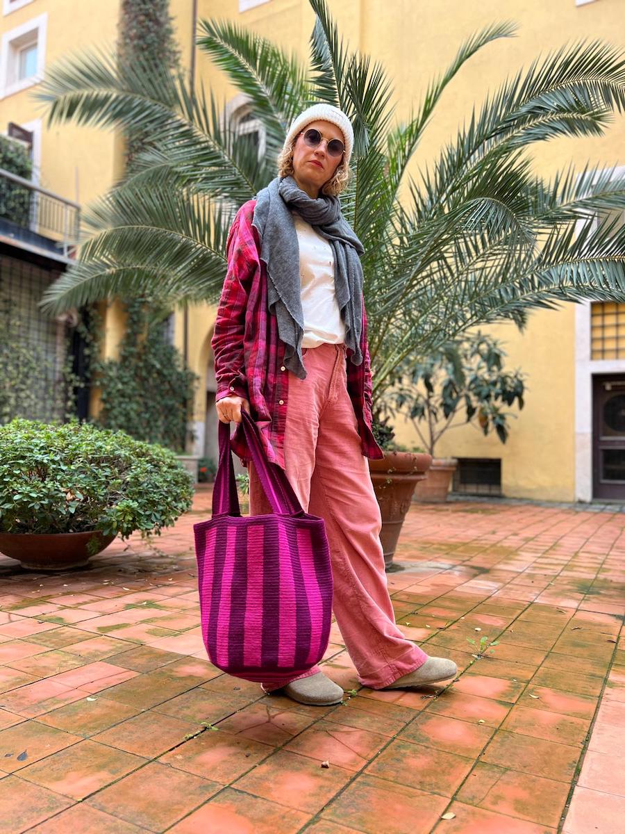 Torebka wykonana ręcznie przez artystki z plemienia Wayuu w Kolumbii. Czas wykonania tego worka to około 14 dni.
