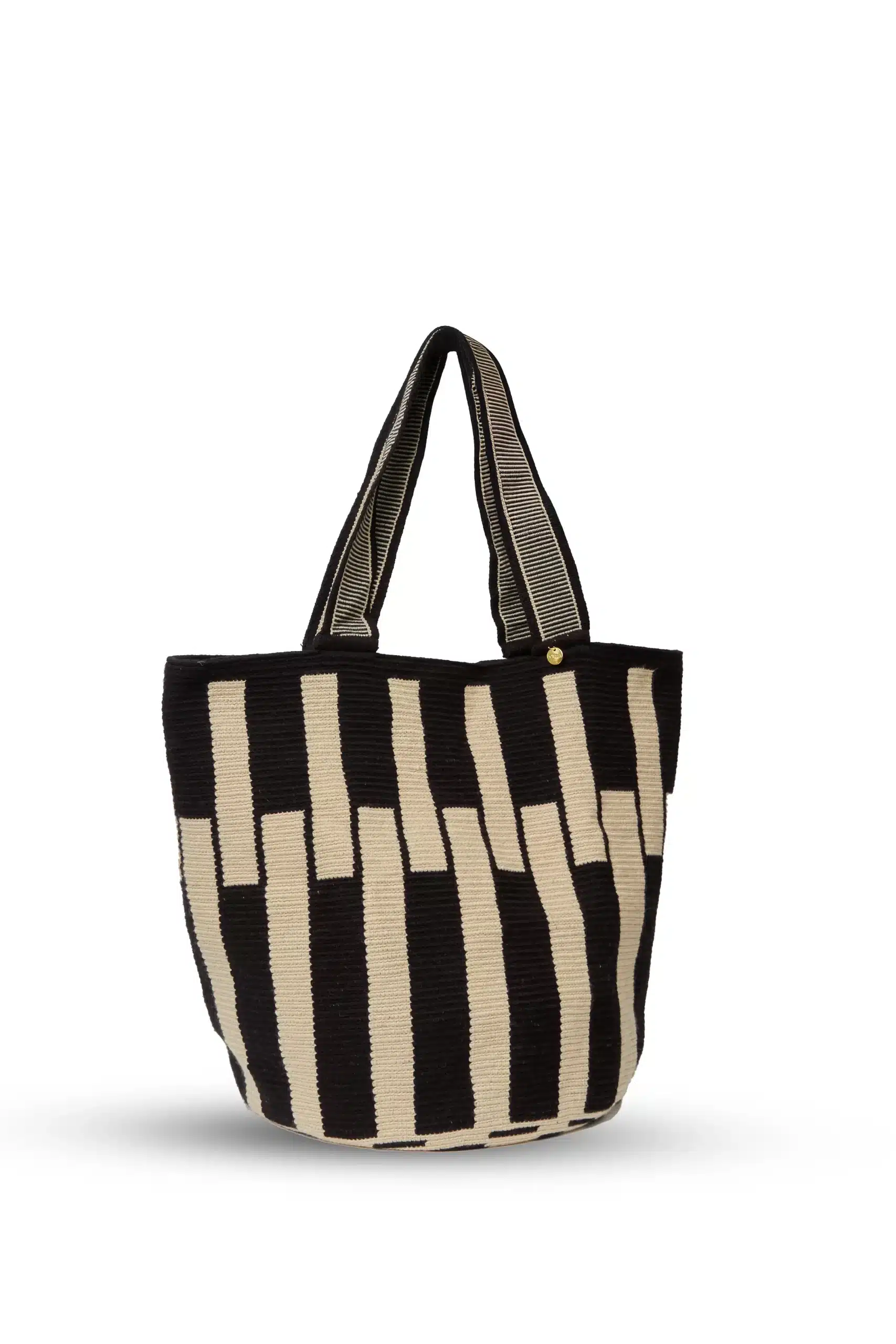Czarno-biała etniczna torba Mochila w rozmiarze maxi LUIZA to wygodne rozwiązanie i niesamowicie atrakcyjny dodatek. Takie torby pozwalają nosić przy sobie wszystko to, co niezbędne.